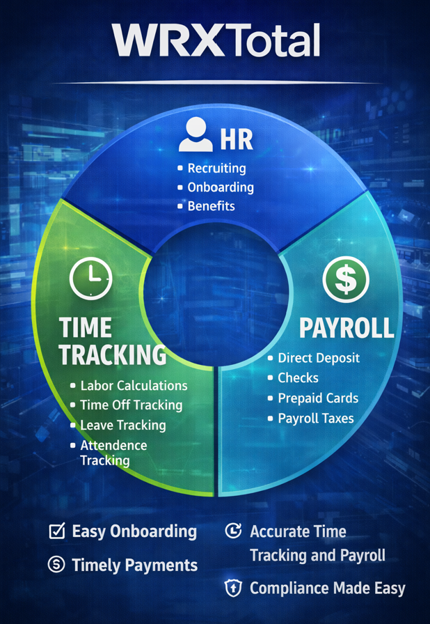 Built for all businesses. Trusted by HR and operations teams. WRXTotal® combines payroll, HR, and time tracking into a single, unified system — eliminating errors, reducing risk, and giving leaders real-time visibility into their workforce.